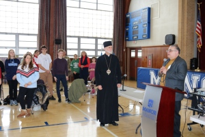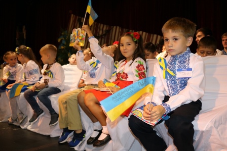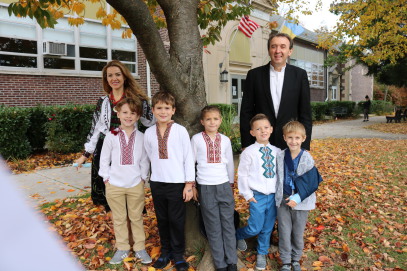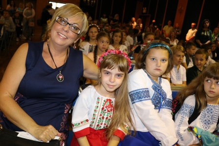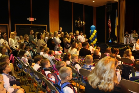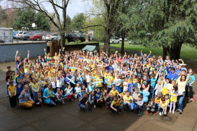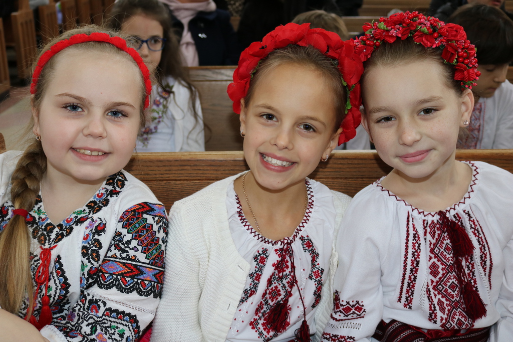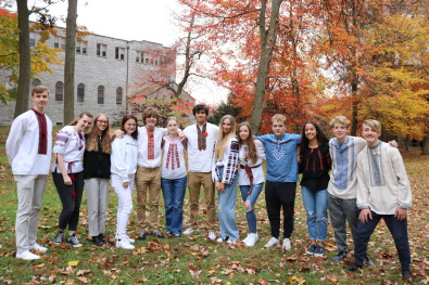 Students and teachers of the school began the day with a prayer for peace in Ukraine. The youngest students from kindergarten to 7th grade make signs supporting Ukraine, which were then used during a gathering on the back lawn, where they created a physical Tryzub (Trident), the main national symbol of Ukraine. The students and teachers expressed their support for Ukraine in this difficult time.